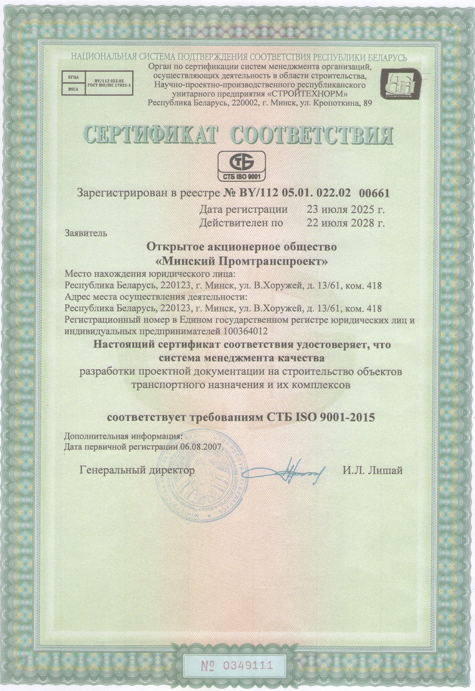 Сертификат соответствия требованиям СТБ ISO 9001-2015